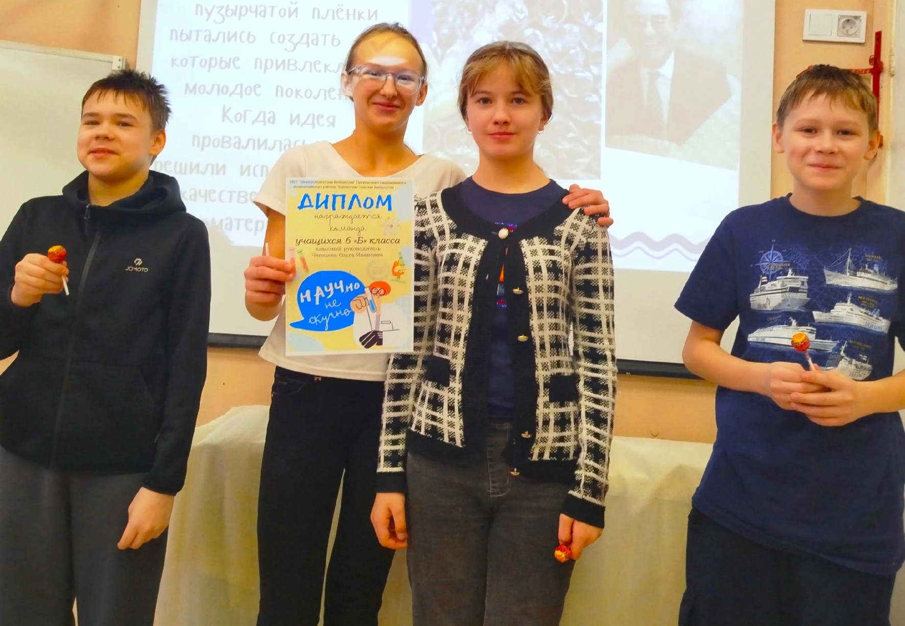 Чалнинская сельская библиотека продолжает серию интеллектуальных квизов для учащихся 6 "Б" класса. Сегодняшняя игра, "Научно не скучно", собрала три команды: "Теоретики", "Эврика" и "Знатоки".
