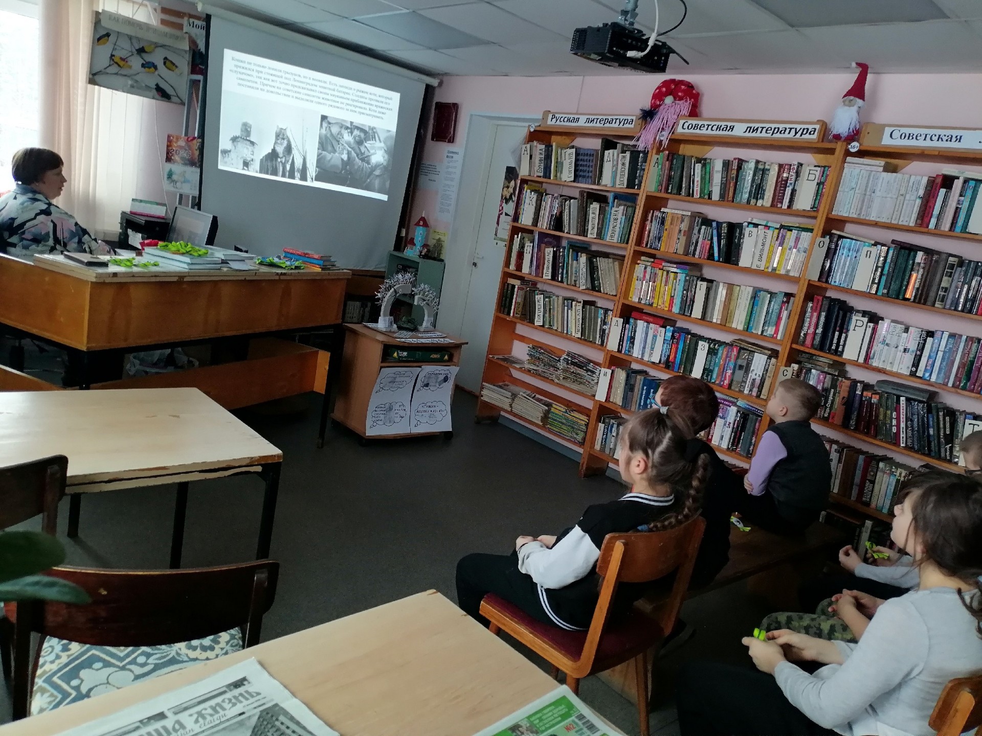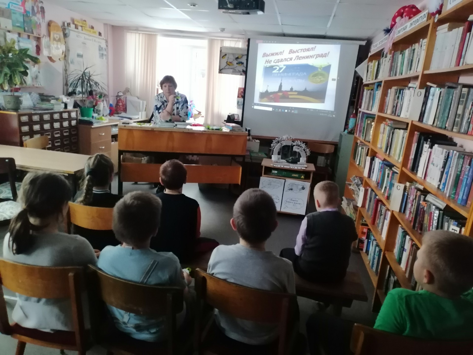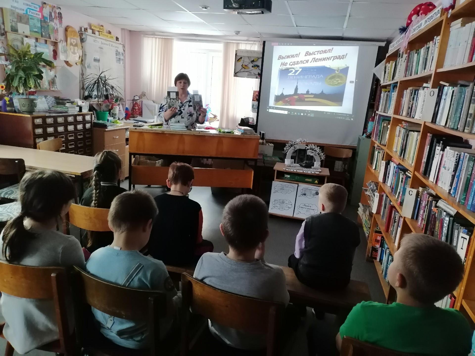 Библиотекарь рассказала ребятам о тяжелых испытаниях, выпавших на долю жителей блокадного Ленинграда: о голоде и холоде, о детях и женщинах, работавших наравне с мужчинами на заводах, о защите и обороне Ленинграда советскими солдатами. Ребята узнали о блокадных кошках. «Мяукающая дивизия» — так в шутку называли прибывших животных блокадники — была брошена в «бой». Сначала кошки, измученные переездом, осматривались и всего боялись, но быстро оправились от стресса и принялись за дело. Улицу за улицей, чердак за чердаком, подвал за подвалом, не считаясь с потерями, доблестно отвоевывали они город у крыс. Говорят, что в год прорыва блокады и отступления фашистов была разгромлена и «крысиная армия». Некоторые считают, что история о «блокадных кошках» — это легенда. Однако документы и воспоминания блокадников говорят об обратном.