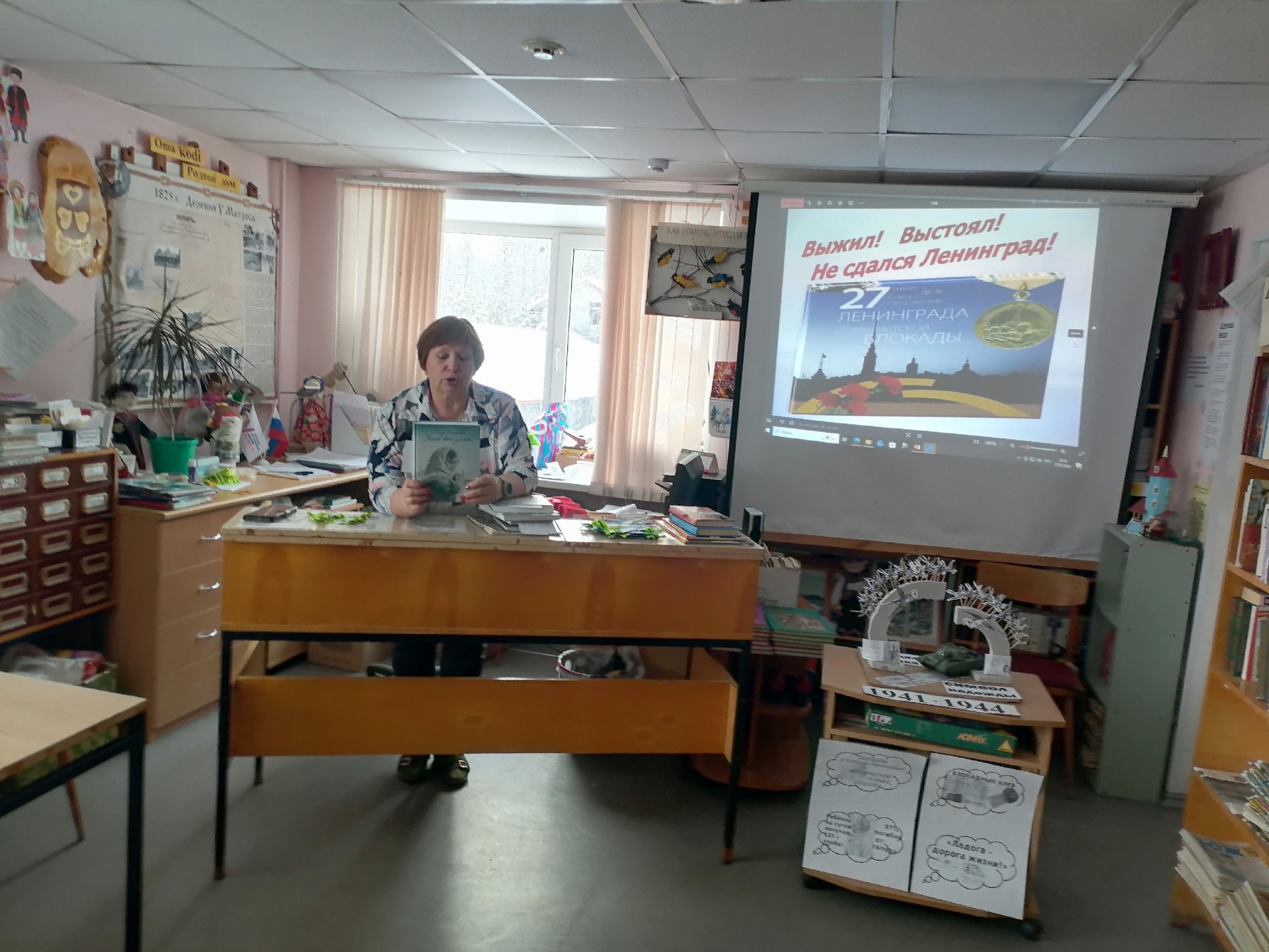 Ярким дополнением к мероприятию стала книжная выставка-обзор «Блокада Ленинграда на страницах книг». На выставке были представлены книги, повествующие о событиях тех лет, о защитниках города, о детях, которые пережили все ужасы блокады.