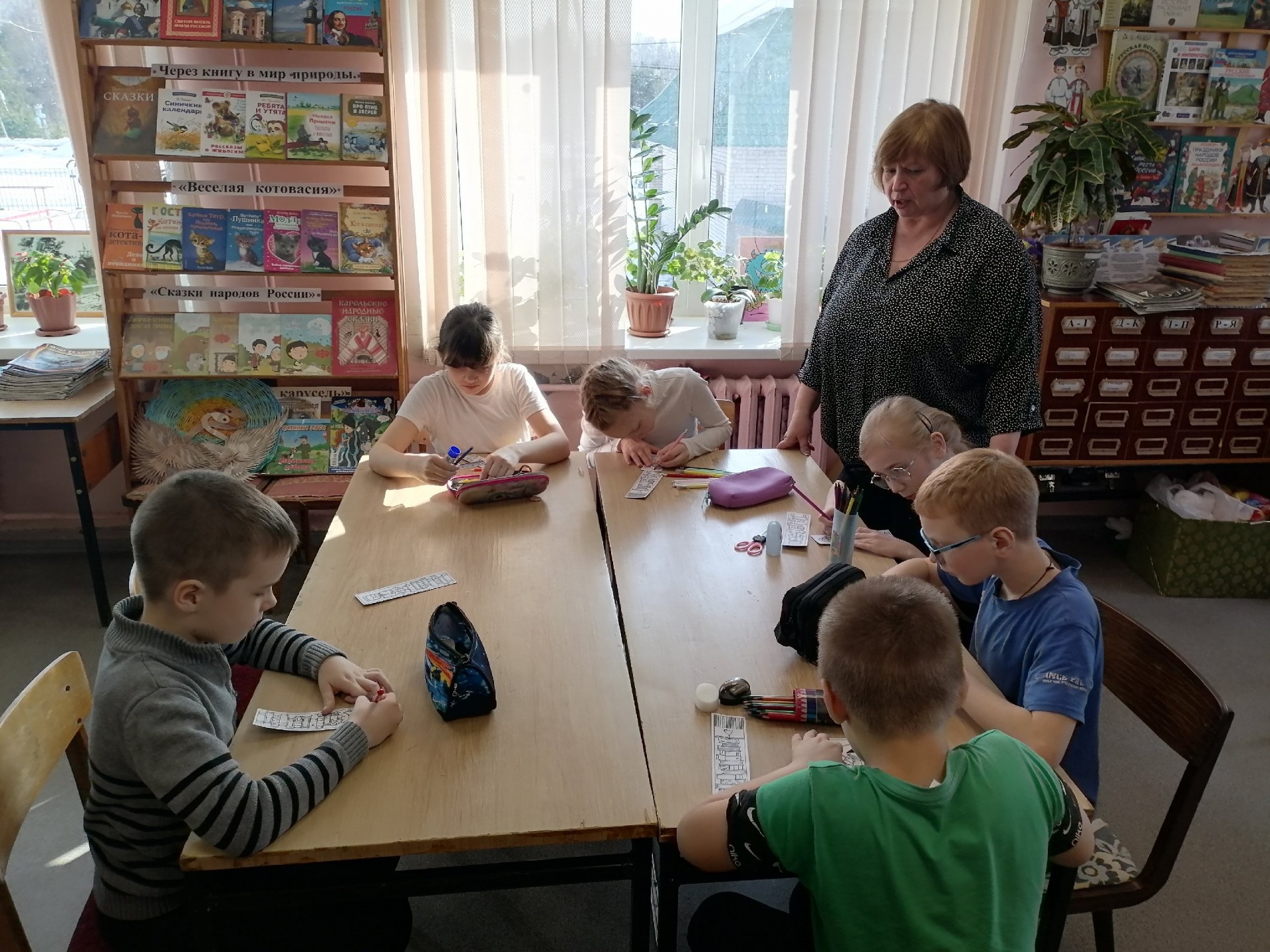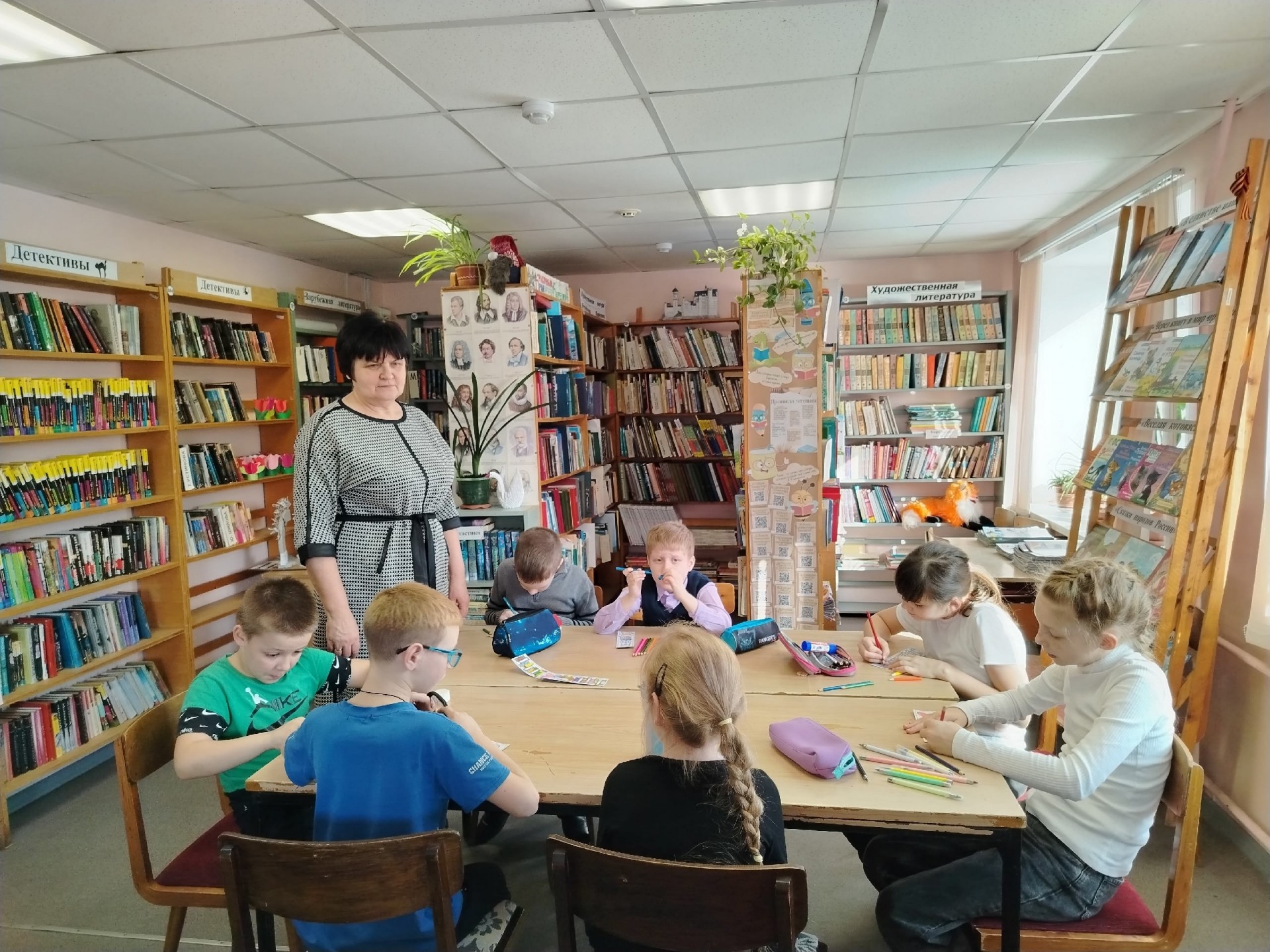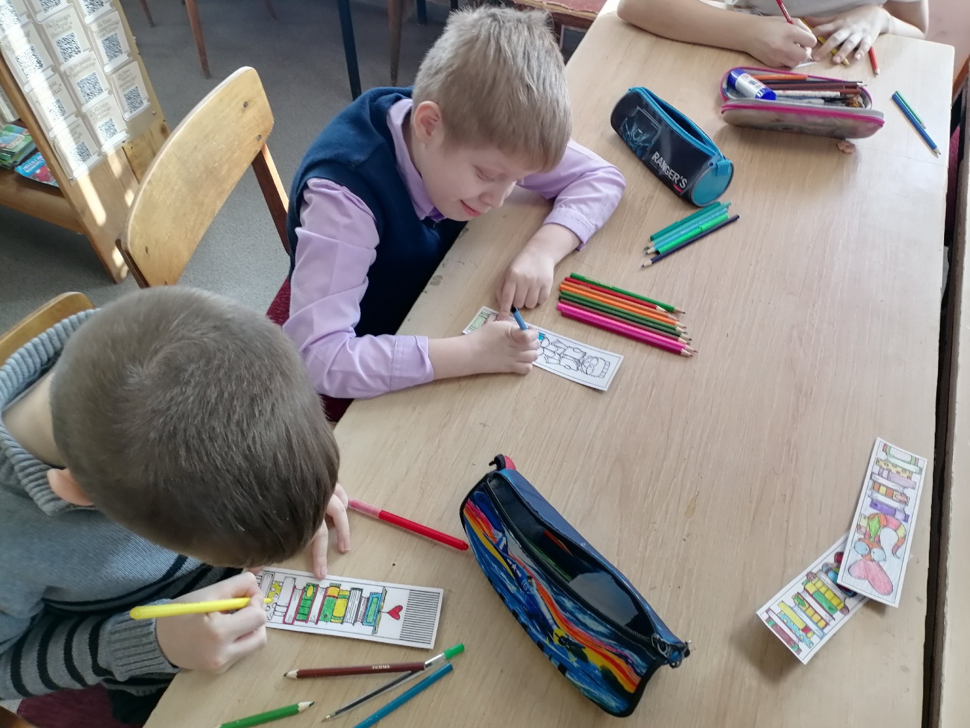 В Матросской сельской библиотеке прошло доброе и полезное мероприятие: ребята 3 класса Матросской ООШ решили сделать подарки для первоклассников — красивые и полезные закладки для книг. Это не просто творческий мастер‑класс, но и важный урок о том, как правильно обращаться с книгами. Их ждали: цветная бумага и картон, ножницы и клей, фломастеры и карандаши. Когда все закладки были готовы, ребята торжественно вручили их ученикам первого класса. Вместе с подарком они получили и небольшой, но важный урок: