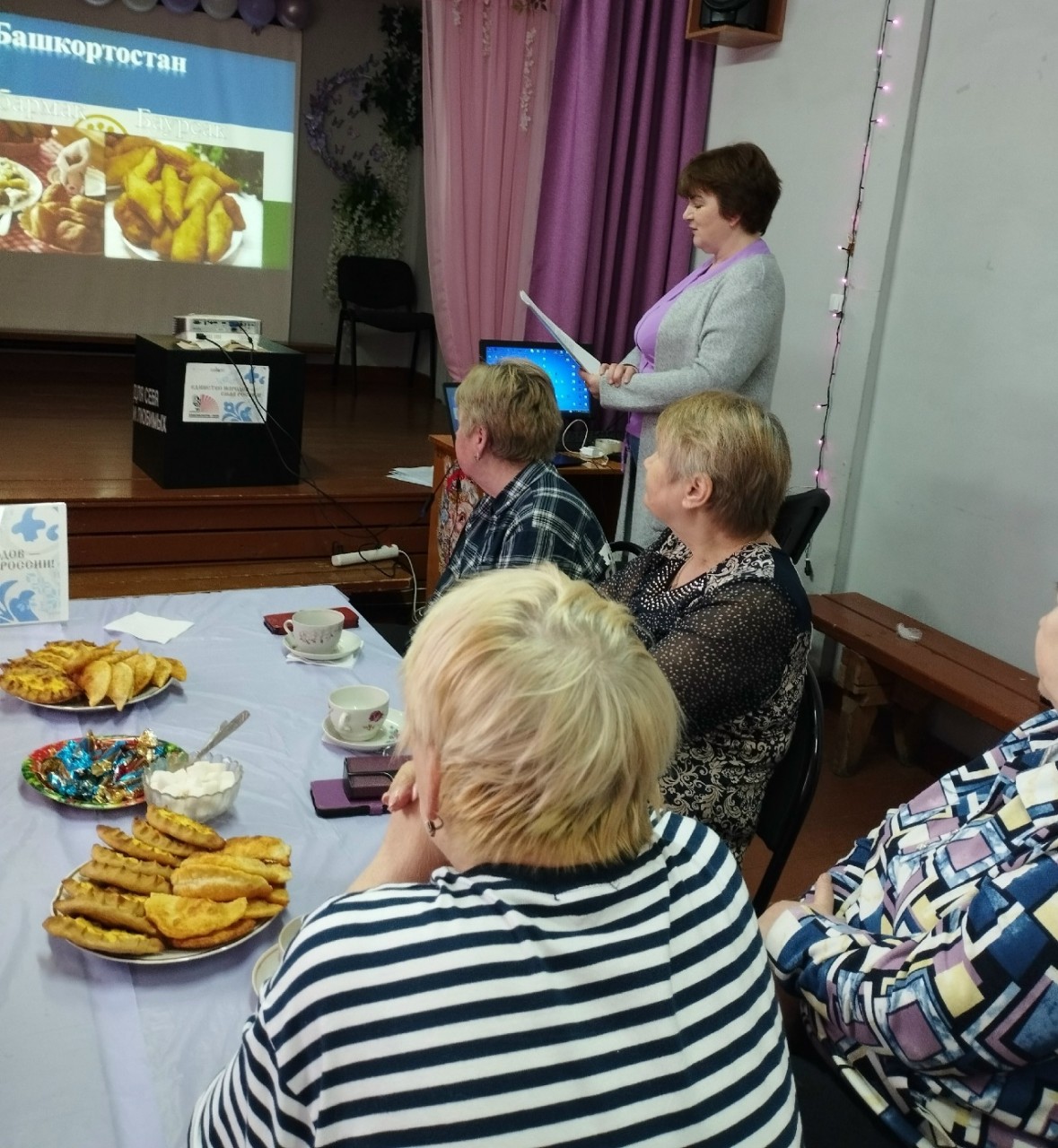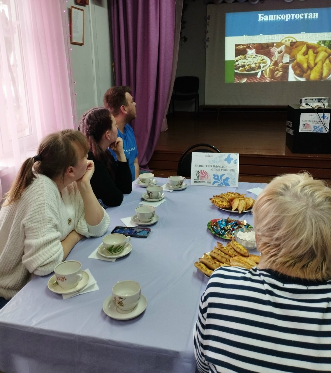 Мероприятие "Библионочь" началось с демонстрации презентации «Кухня народов России», которая позволила гостям отправиться в виртуальное гастрономическое путешествие по 15 регионам страны. Это было удивительное приключение!