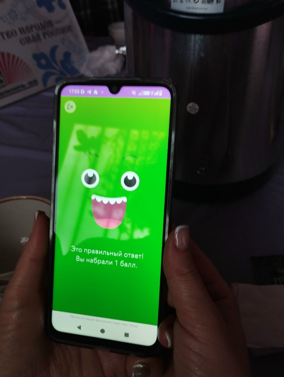 Викторина «Песни из наших фильмов» прошла в увлекательном и весёлом формате, проверив память и любовь к кино у участников. В каждом раунде задавались вопросы о песнях из отечественных фильмов и сериалов. Они стали неотъемлемой частью культуры, и участники вспоминали разнообразные музыкальные композиции.Были пройдены семь раундов: «Щас спою», «Криминал», «Сказочная страна», «Ностальгия по нулевым», «Всё серьёзно», «Современные сериалы» и «Блиц» и получено 52 ответа на вопросы. В ходе мероприятия состоялось музыкальное путешествие, наполненное ностальгией и яркими эмоциями, некоторые участники стали настоящими знатоками кино-музыки.