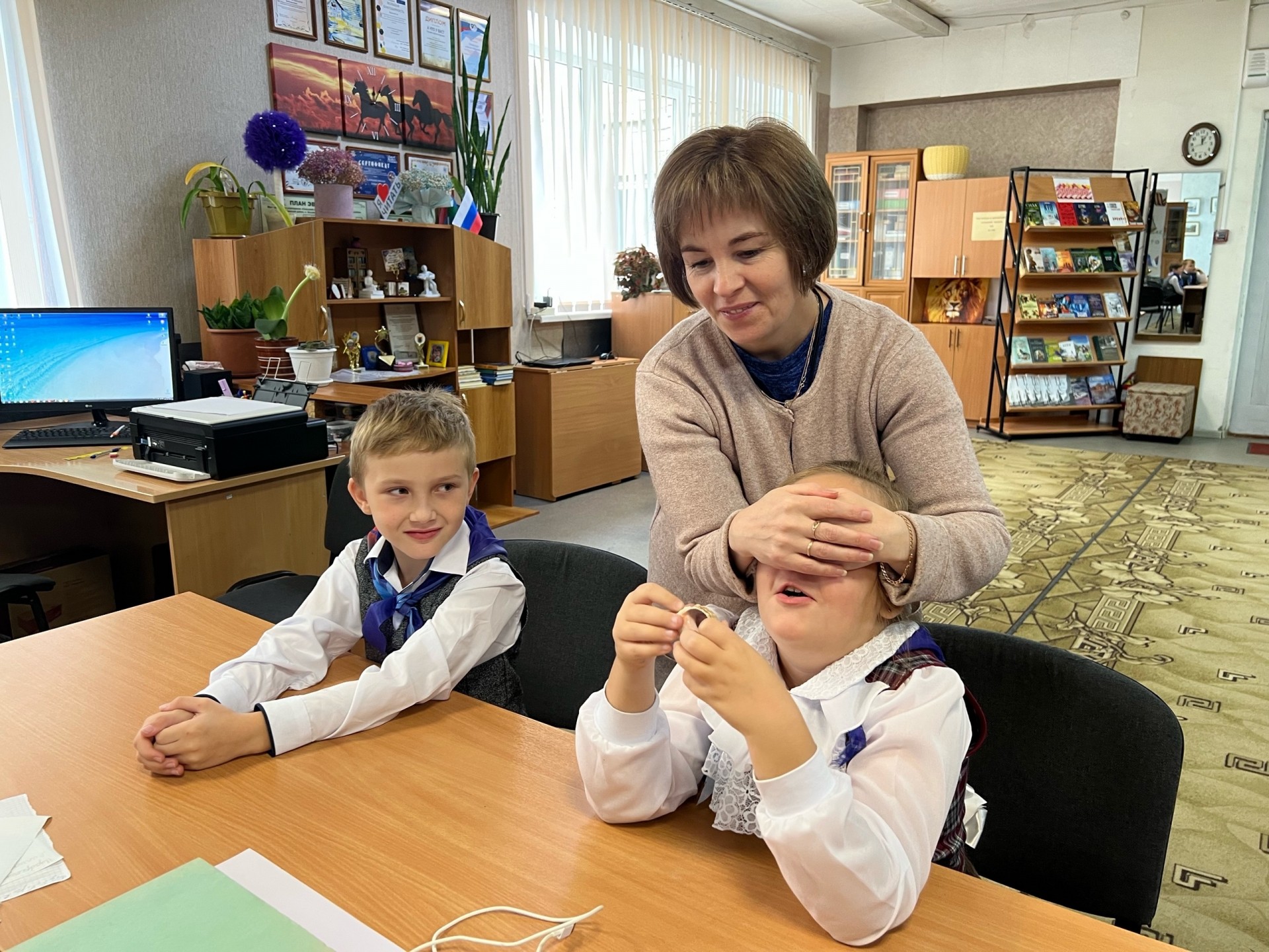 Затем пришло время испытать свои тактильные ощущения. Библиотекари приготовили для ребят таинственную коробку и, в которой скрывались различные предметы. Закрыв глаза, каждый должен был на ощупь определить, что он держит в руках. Кто-то сразу узнавал знакомый предмет, а кому-то требовалось больше времени, чтобы сложить пазл из ощущений.