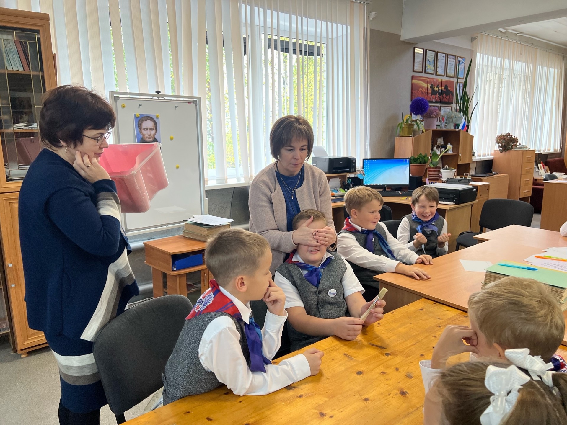 Сегодня, накануне Дня учителя ребята 2«А» класса вместе с классным руководителем Гавриловой Мариной Павловной посетили мероприятие в библиотеке п. Эссойла, посвящённое педагогу и изобретателю Луи Брайлю.