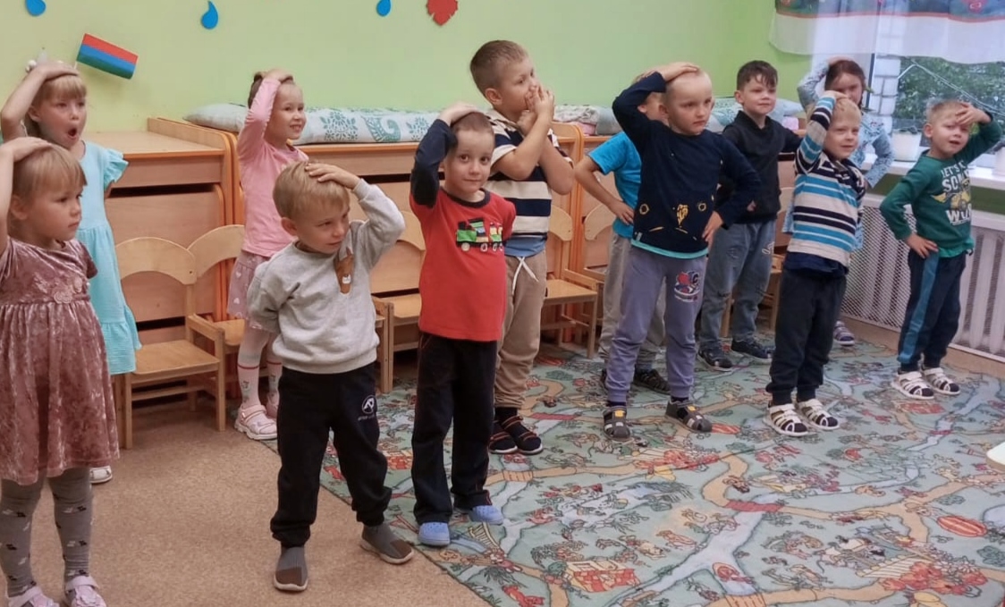 Не забыли и подвигаться: необычные упражнения по нейрогимнастике развеселили ребят (заодно повторили где лево, а где право), а тренировка вести расчёт на «Первый, второй» и маленькая обучалка вставать в две шеренги заставили ребяток не на шутку сосредоточиться.