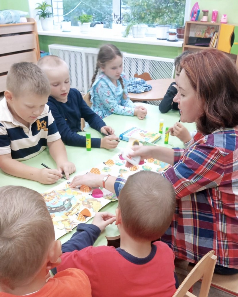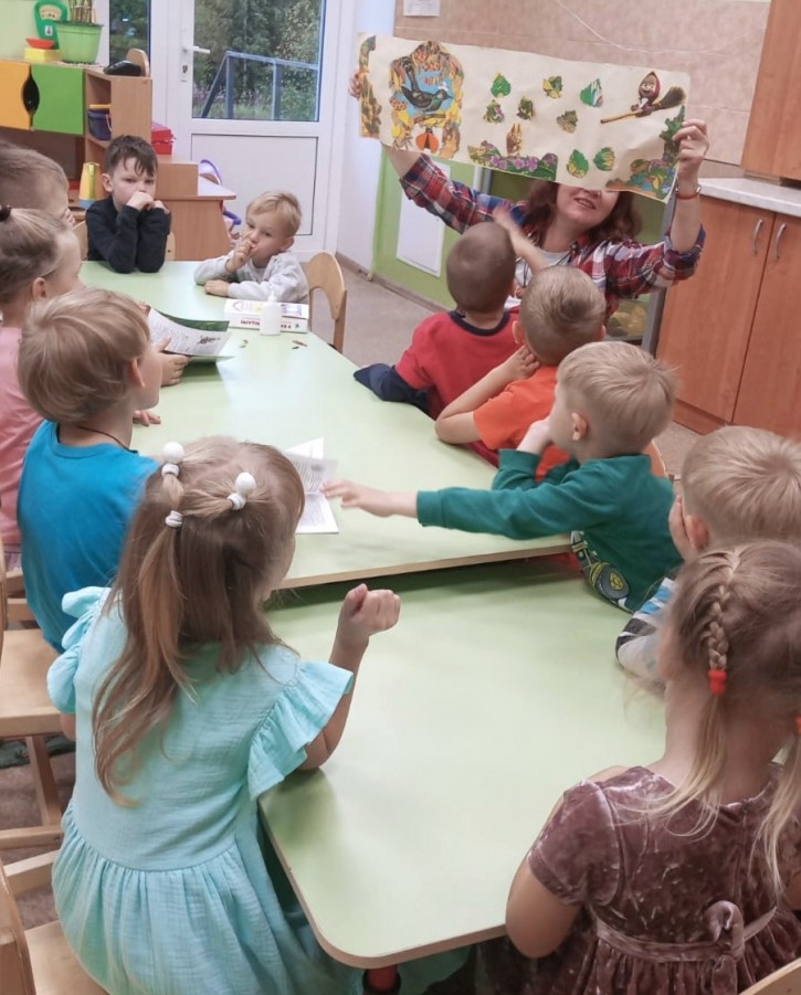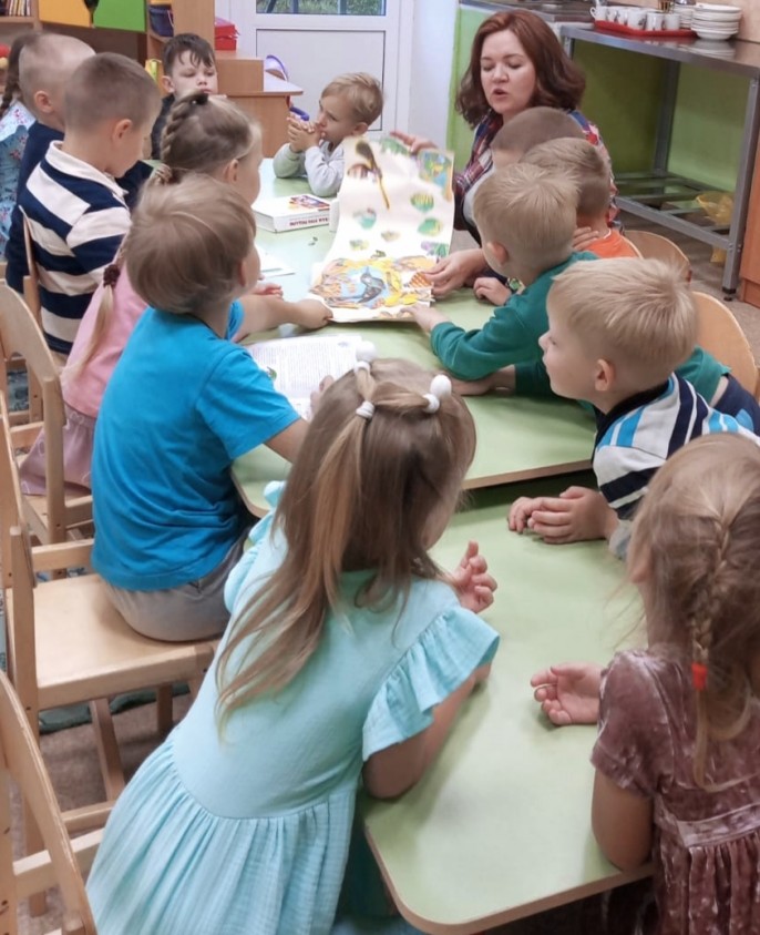Ребята внимательно её послушали, потом ответили на вопросы по сказке. Книга, кстати говоря, замечательно иллюстрирована художниками Варварой и Ольгой Кондратьевыми. Ребята с удовольствием рассматривали картинки и искали различных насекомых, которые, как в природе, спрятались в этих картинках.