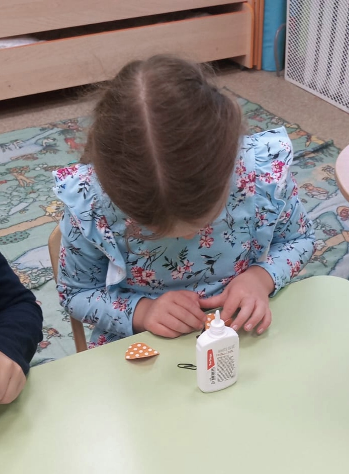 Потом сделали групповую аппликацию «Божья коровка и другие насекомые». Посвистели в свистульку, изготовленную вручную.