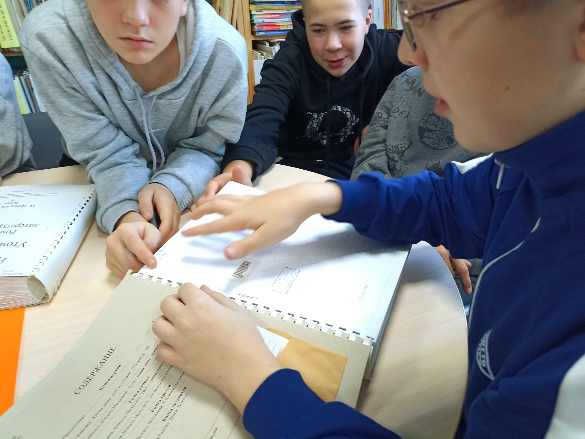 Ребята также познакомились с книгами для слепых, услышали новый для них термин "шрифт Брайля", договорились вновь встретиться, чтобы научиться читать с помощью этого шрифта.