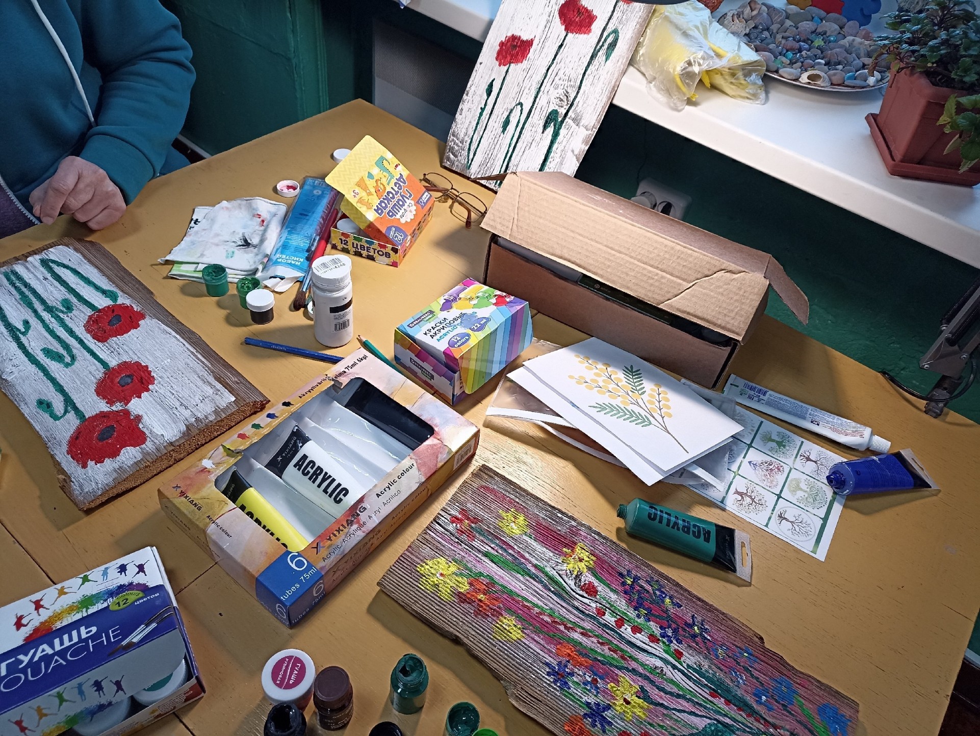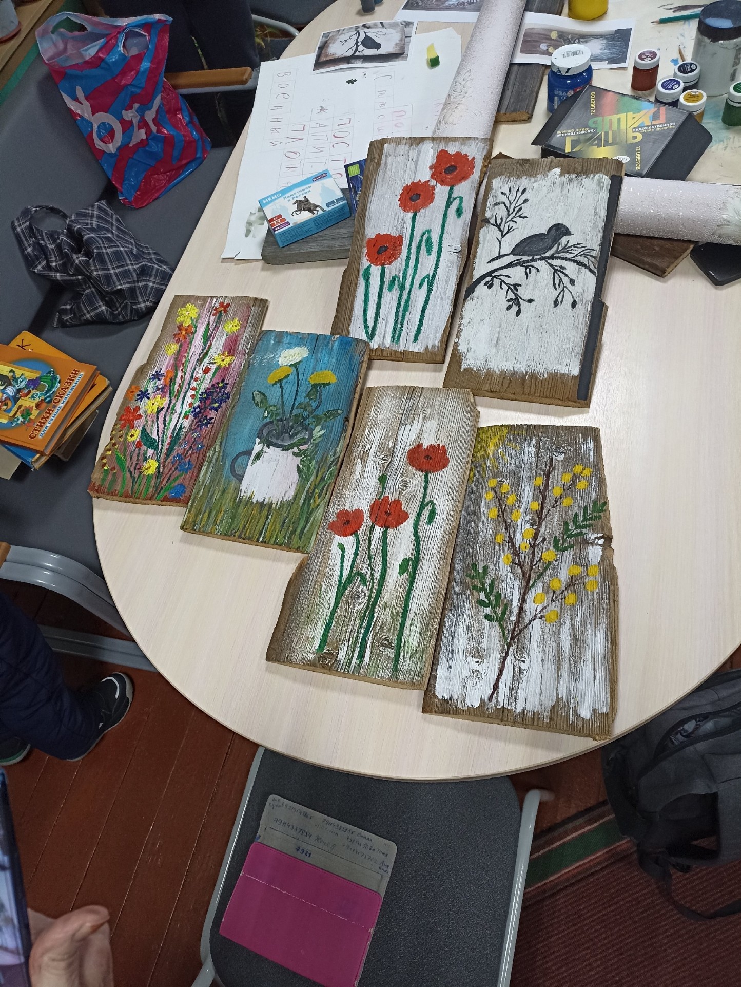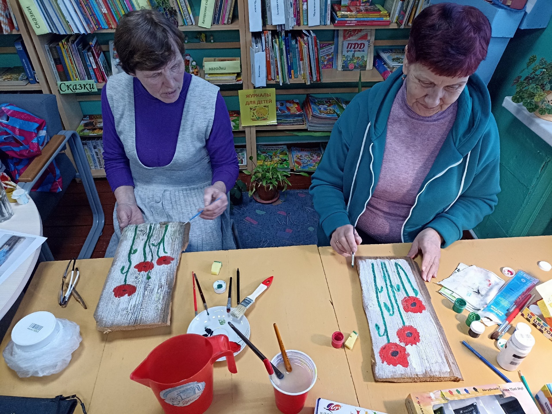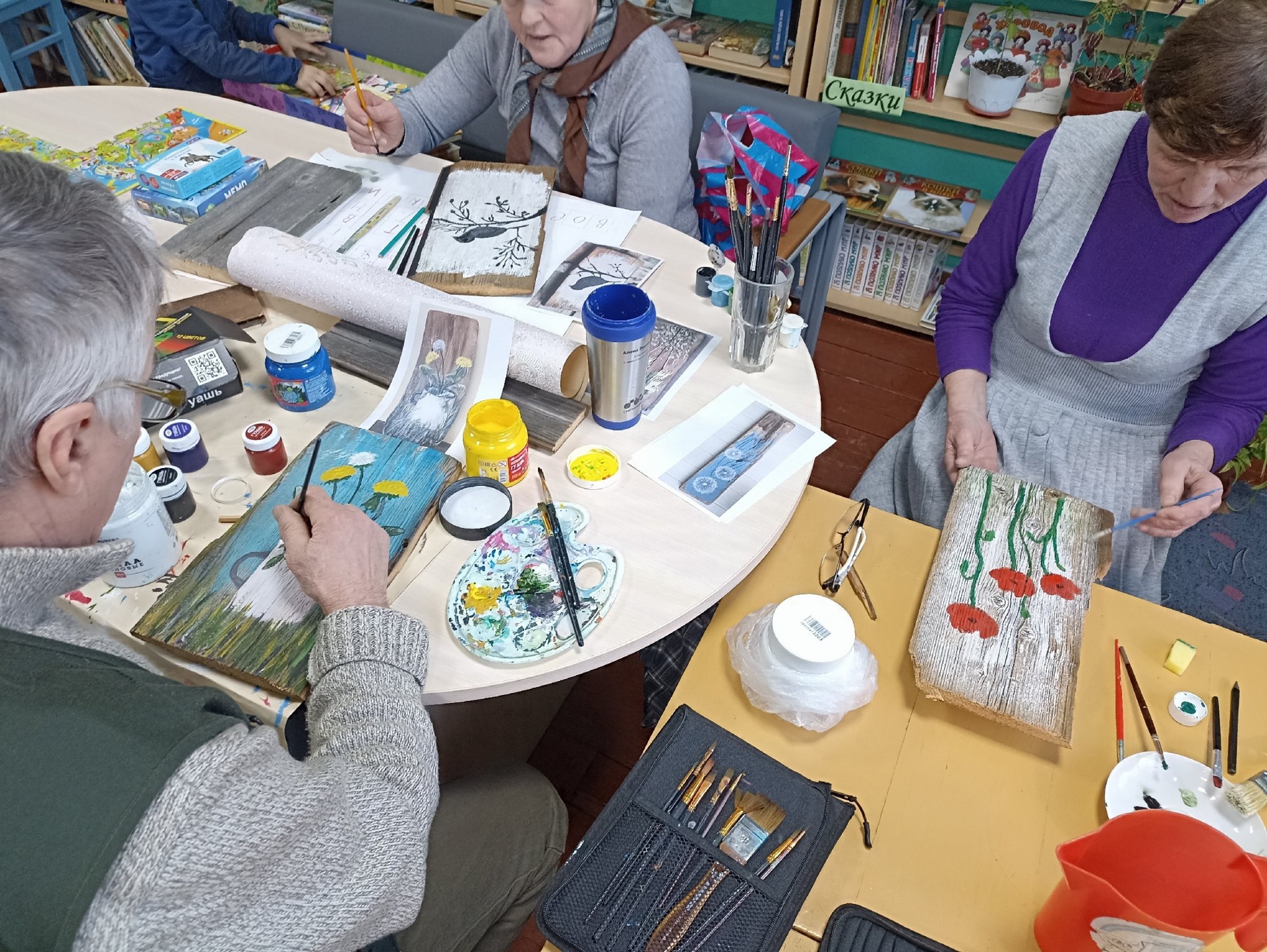 Сегодня в библиотеке состоялось необычное занятие - мы рисовали на деревянных досках. Рисовали гуашью и акрилом.