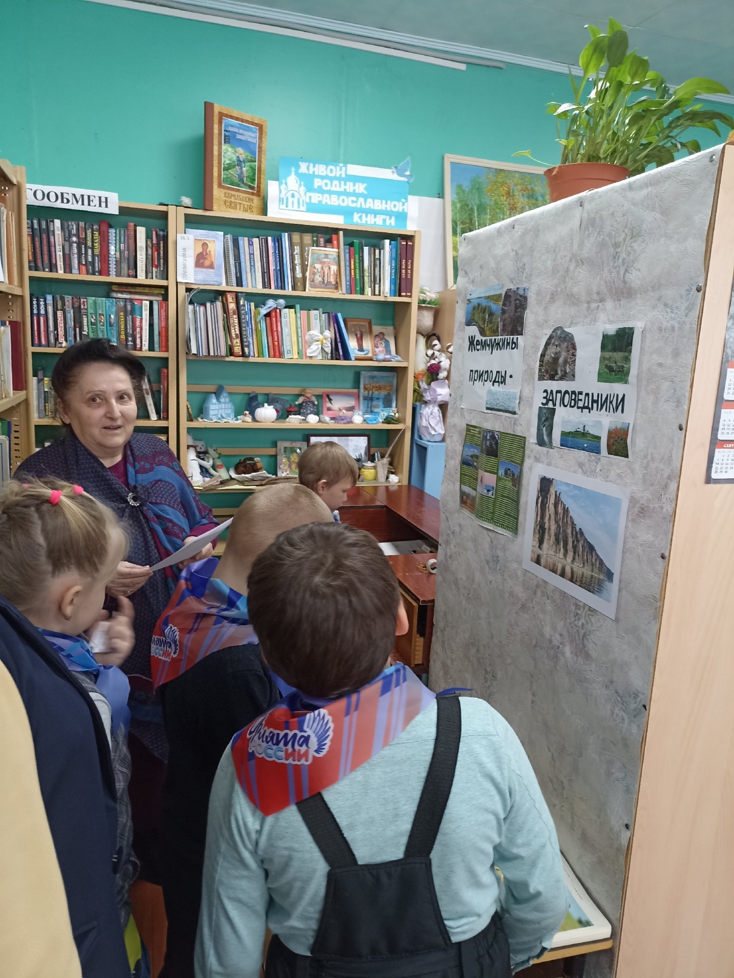 Ко дню заповедников и национальных парков в библиотеке для учащихся 1-го класса провели экологический час «Путешествие в заповедный мир природы» Библиотекарь рассказала, что такое заповедник, заказник, памятник природы, для чего они нужны, почему нужно охранять природу. Учащиеся узнали об особо охраняемых природных территориях нашей Родины, о животном и растительном мире этих территорий, познакомились с заповедниками и памятниками природы Карелии с основными правилами поведения в особо охраняемых территориях.